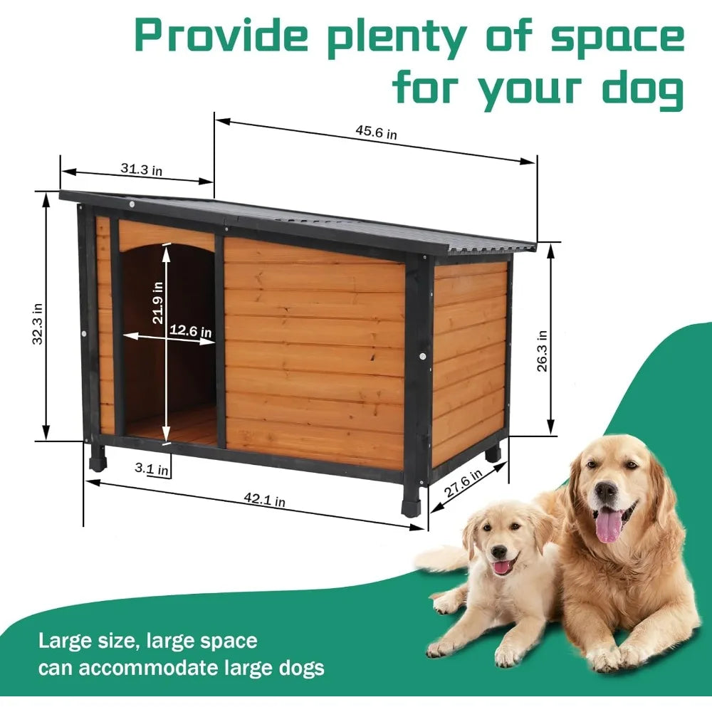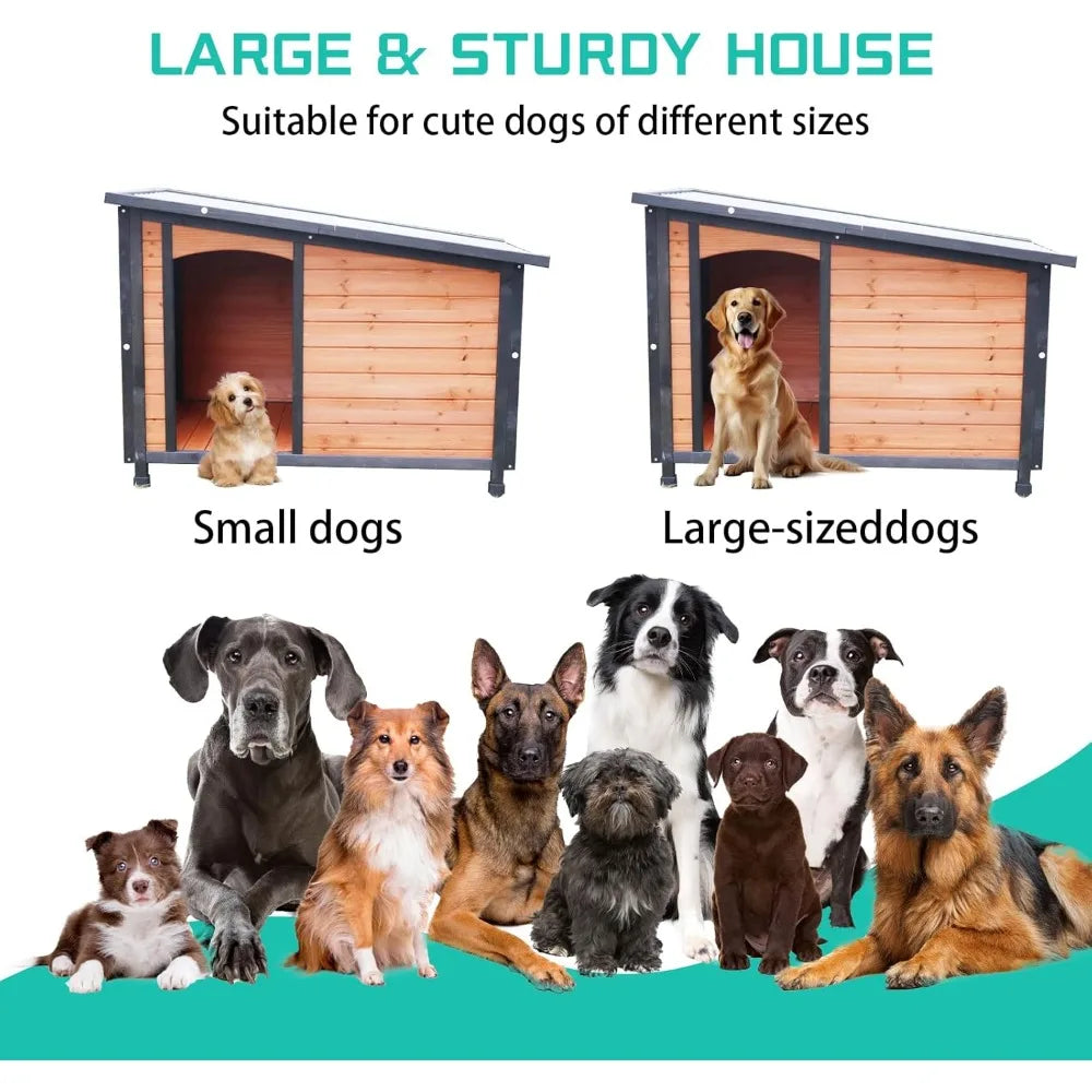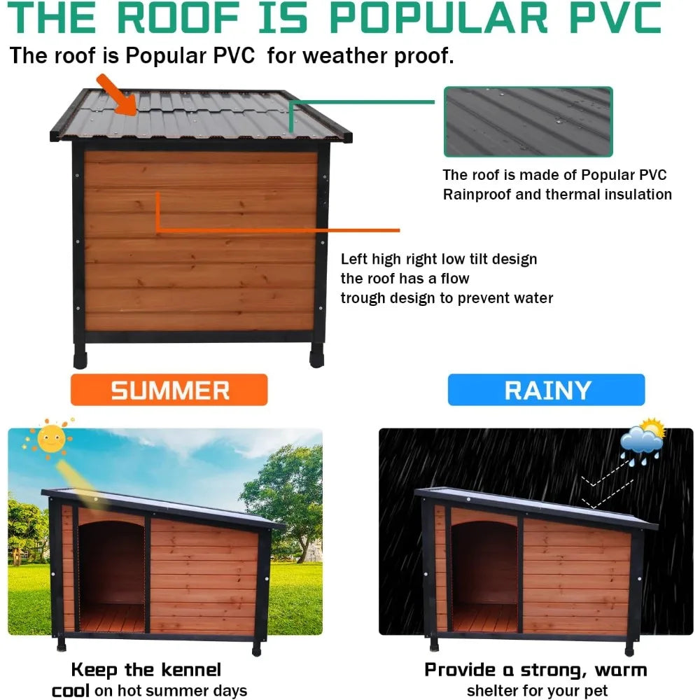 Welcome your furry friend to their new haven with the Extra Large Dog House Outdoor Weatherproof PVC Sloped Roof Dog House. Crafted from high-quality wood, this stunning wooden dog house is not just about looks—it's engineered for comfort, safety, and durability.