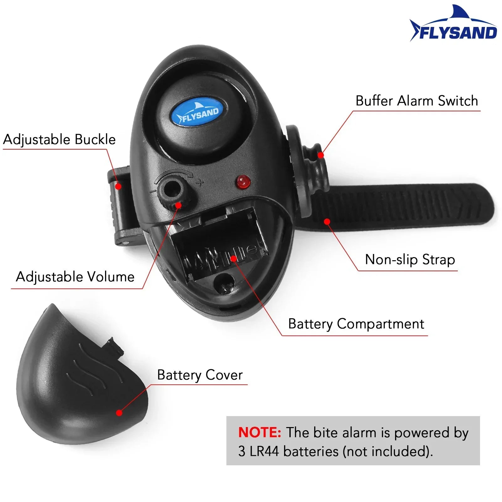 Constructed from durable ABS material, the FLYSAND bite alarm is both portable and easy to install. Simply attach it to your fishing rod, flip the power switch, and you're ready to go! Its advanced alert system includes: