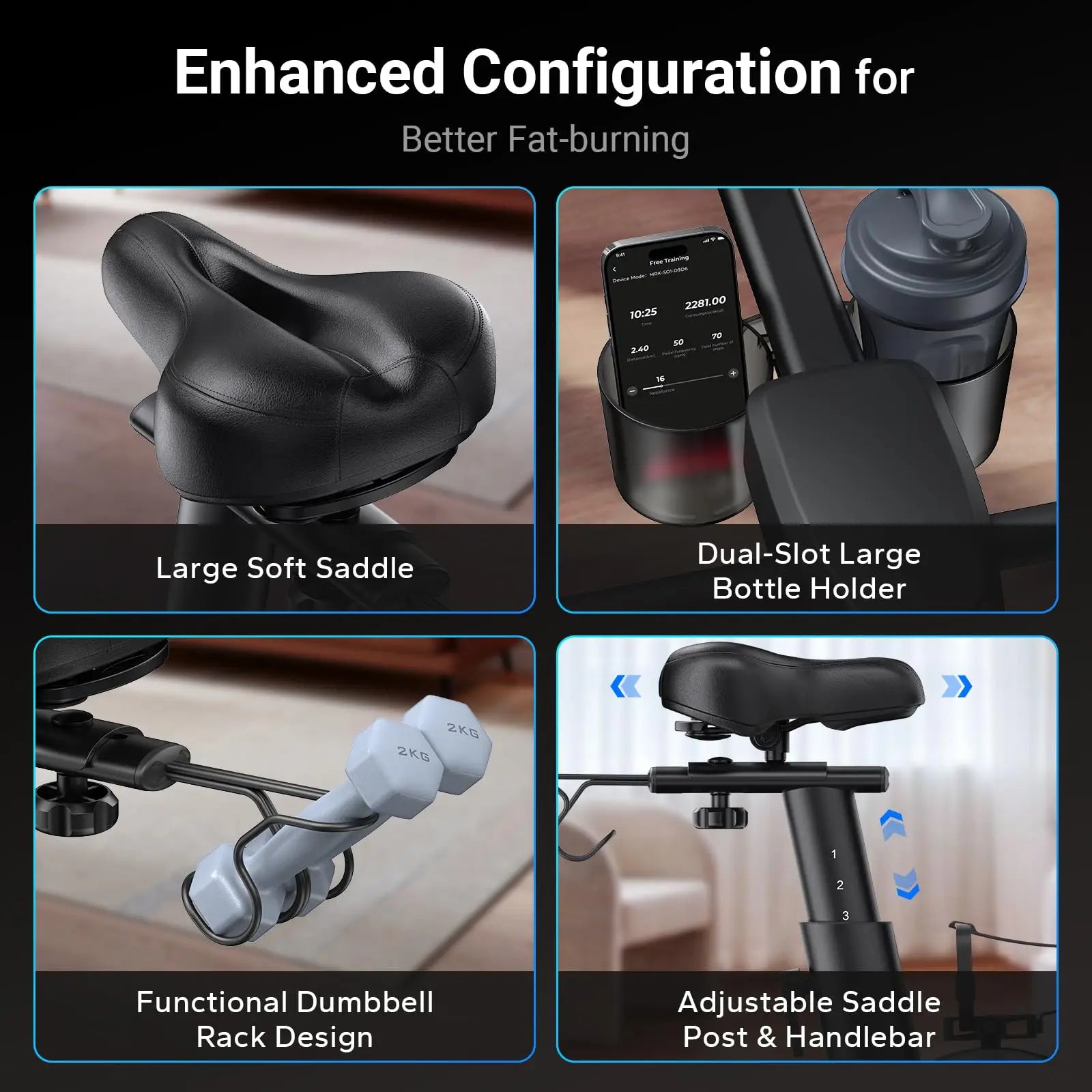 - Quiet Performance: Experience a serene workout with our multi-slot silent belt drive and iron sand flywheels, ensuring a distraction-free environment.