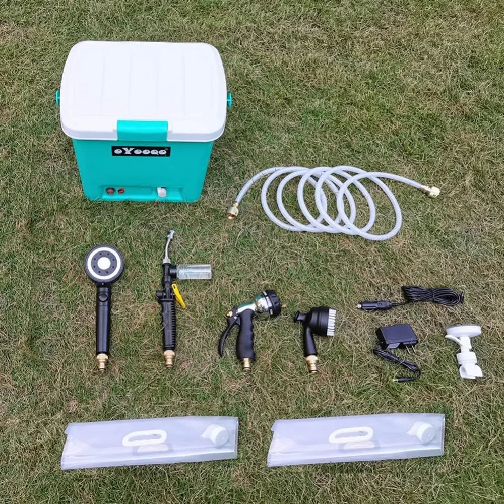 Introducing the Portable Shower Rinse Kit Pro, your ultimate solution for outdoor showers, camping trips, and more! This 5-gallon portable electric shower is designed for convenience and versatility, providing you with a refreshing rinse wherever you go.